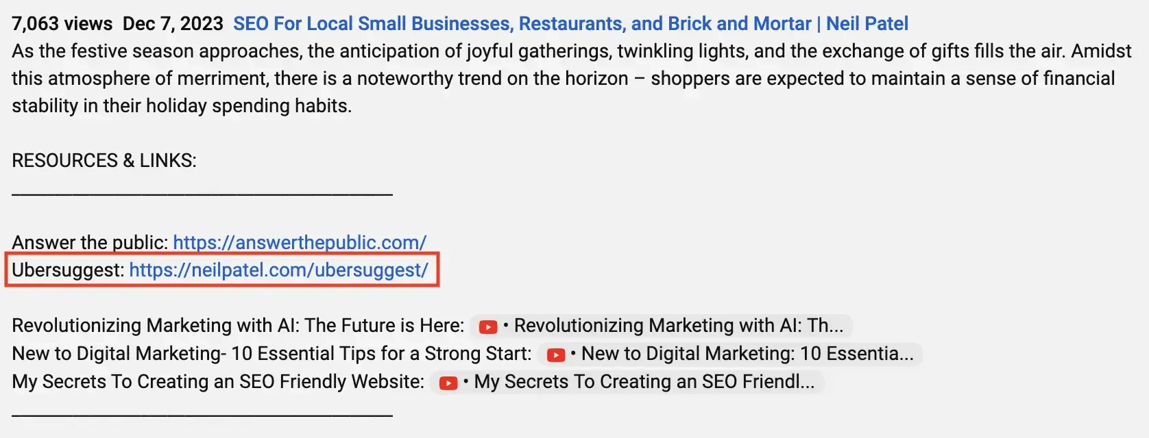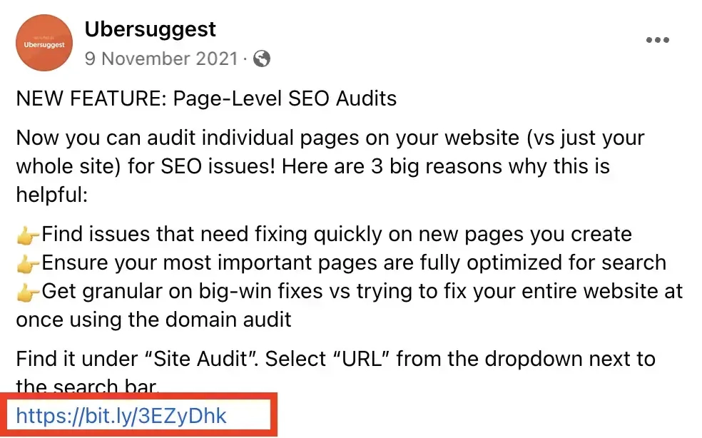 In the below example, Ubersuggest has shared a backlink to its SEO Analyzer tool:
