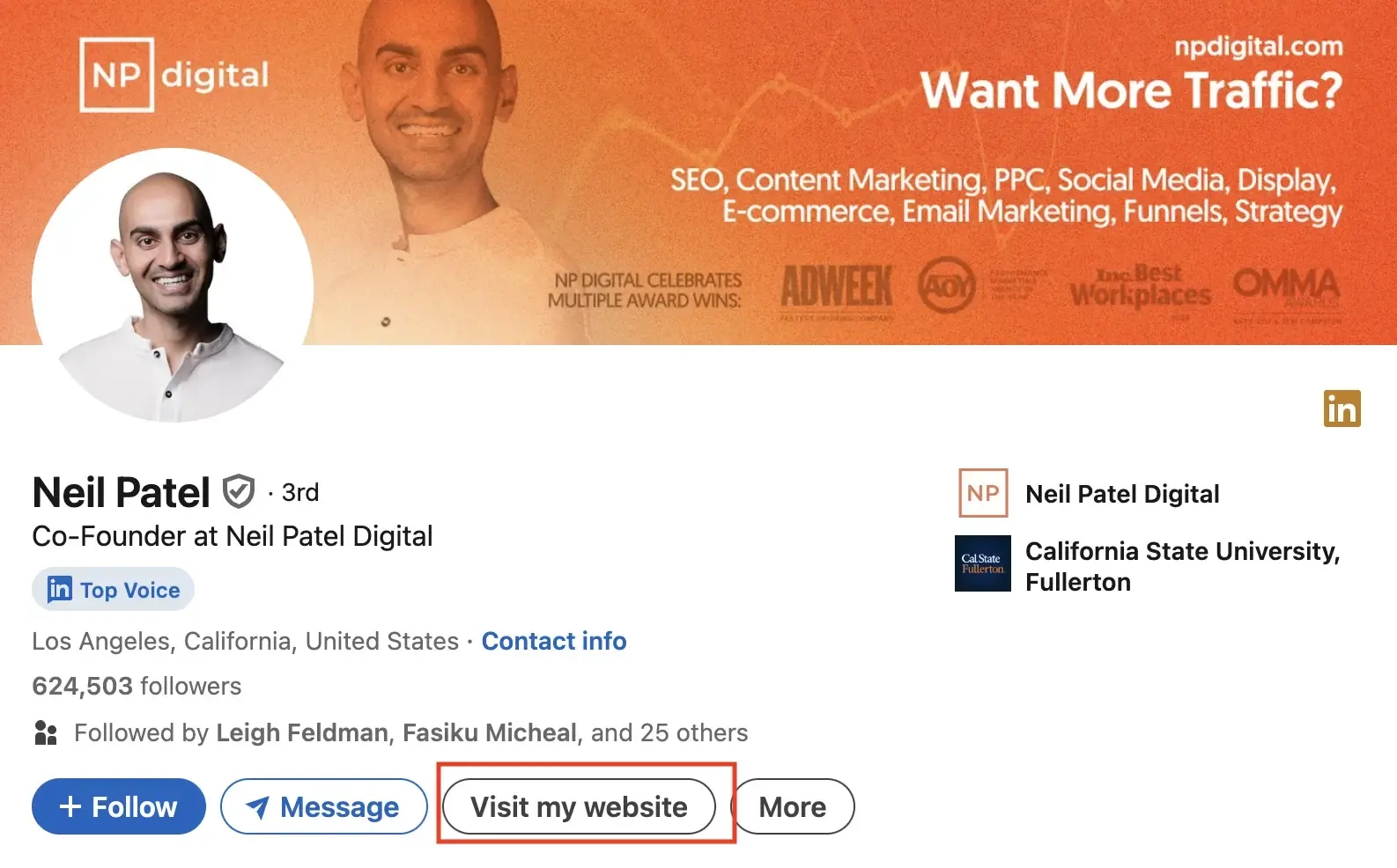 Your LinkedIn bio provides context about your professional background and interests, making it a logical place for a website link: