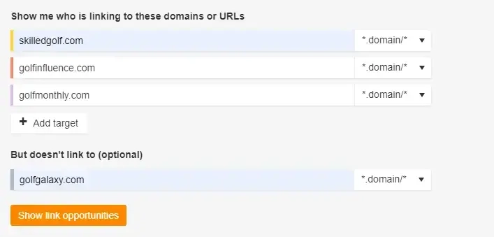 Clicking “Show link opportunities” will provide a list of websites that link to your competitors but not your site. These are all potential outreach targets.